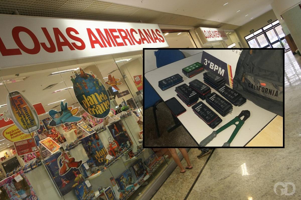 Atualizada às 10h38 - Menor de 17 anos foi apreendido na madrugada desta sexta-feira (12), após ser flagrado pelas câmeras de segurança dentro da loja Americanas, do Pantanal Shopping, em Cuiabá. Com ele, a Polícia Militar encontrou 51 celulares que estavam sendo furtados da loja. A mercadoria estava avaliada em R$ 60 mil. Assessoria do shopping informou que a segurança agiu rápido e que está ajudando na apuração dos fatos.