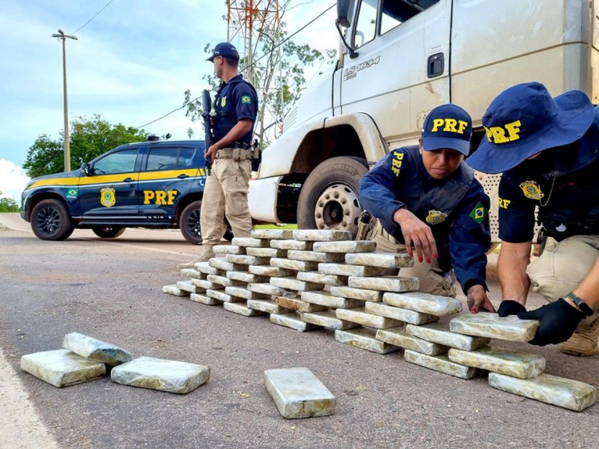 Foi feita revista no caminhão e reboque, sendo encontrada a droga no fundo falso. No compartimento havia 53 tabletes de substância análoga à pasta base de cocaína, além de 1 tablete que continha cloridrato de cocaína.