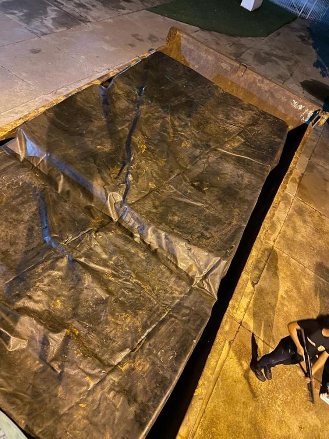 Com base nas informações, os policiais foram até o local onde constataram a veracidade da denúncia, identificando o veículo e ficando de campana até a conclusão do abastecimento dos contêineres, quando o motorista tentou ocultar a carga com uma lona.