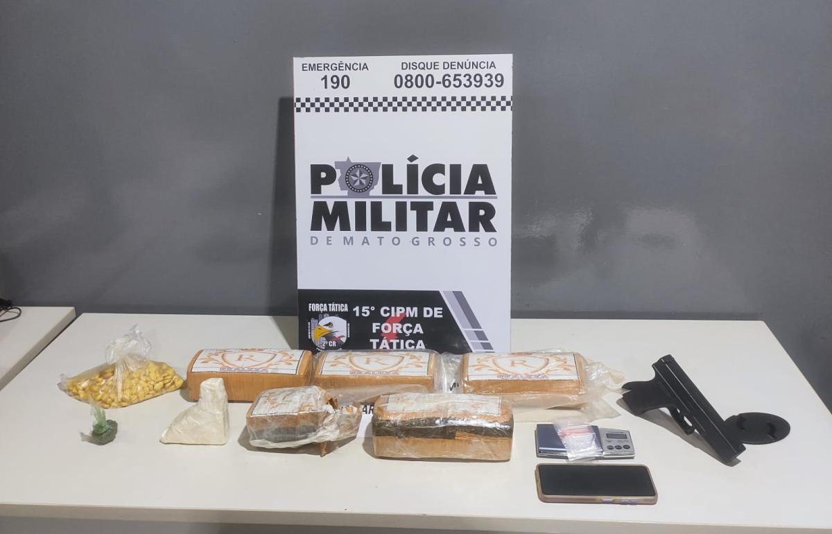 Ainda durante os procedimentos, foi constatado um mandado de prisão expedido pela 2ª Vara Criminal de Cuiabá. A suspeita foi conduzida até a Central de Flagrantes.