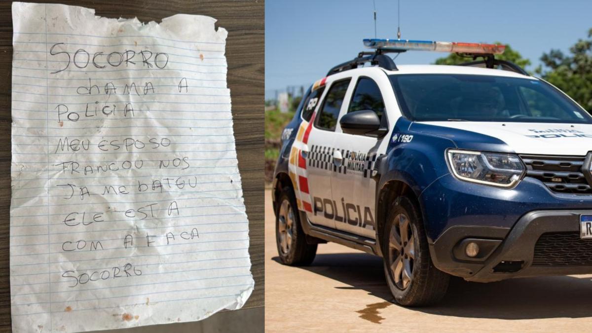 A ocorrência começou depois que a Polícia Militar recebeu a informação de um possível sequestro em uma casa localizada no bairro Vida Nova II. No local, os militares encontraram um bilhete com um pedido de ajuda escrito pela vítima: “Socorro, chama a polícia. Meu esposo nos trancou e já me bateu. Ele está com uma faca”.