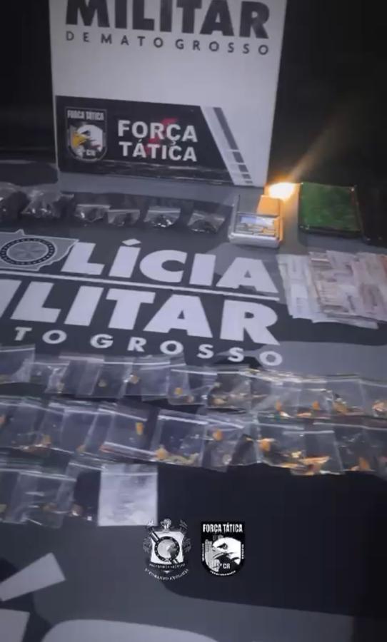 Já no bairro Jardim dos Ipês, uma mulher de 35 anos foi flagrada em um ponto de venda de entorpecentes com aproximadamente 200 gramas de maconha, porções de pasta base de cocaína, uma máquina de cartão, balança de precisão e até uma cédula de bolívares venezuelanos, que pode indicar conexão com o tráfico interestadual ou internacional.