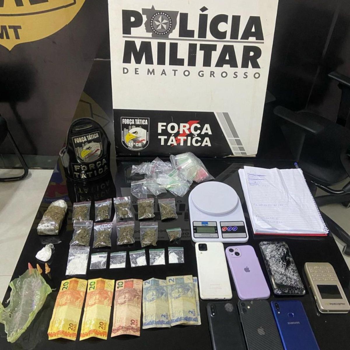 Um homem de 42 anos e uma mulher de 18 foram presos por tráfico de drogas na noite dessa quinta-feira (06) em Nova Mutum (264 km ao Norte). Com eles, foram apreendidos dois adolescentes, de 16 e 14 anos, além de porções de substâncias análogas à cocaína e maconha.