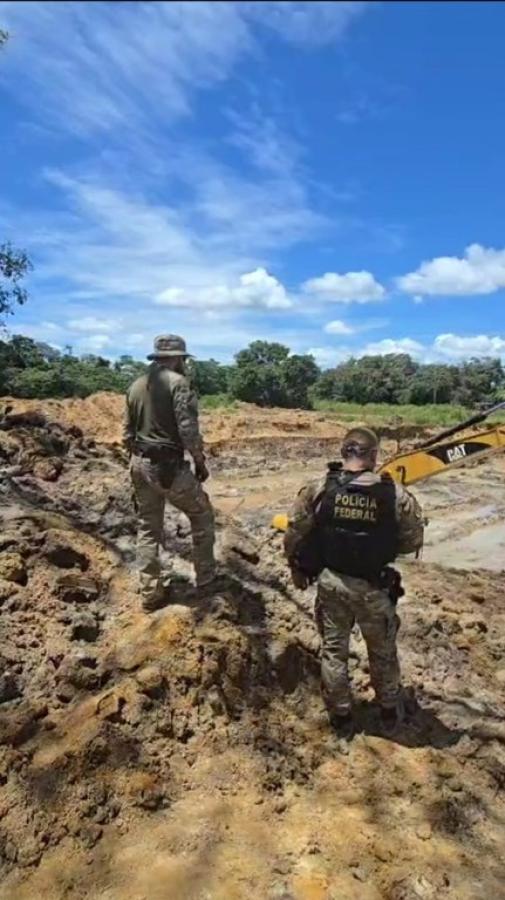 Conforme a assessoria do órgão, os suspeitos operavam duas escavadeiras hidráulicas e dois motores estacionários com intuito de fazer uma pista para iniciar a extração do minério.