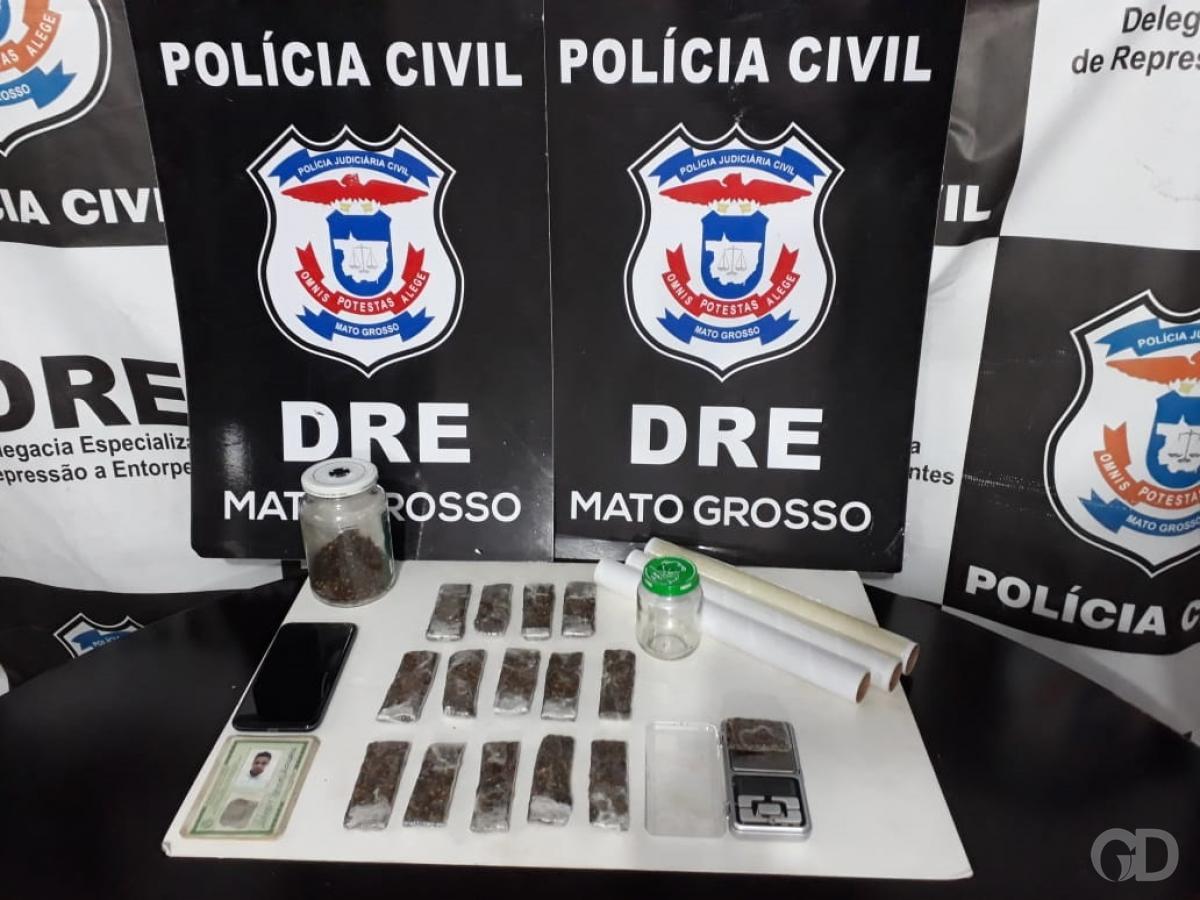 Quinze tabletes de maconha foram apreendidos e um suspeito preso, pela Polícia Judiciária Civil, na tarde de segunda-feira (22), em Cuiabá. A ação foi deflagrada pela Delegacia Especializada de Repressão a Entorpecentes (DRE), em uma residência no bairro Vista Alegre.
