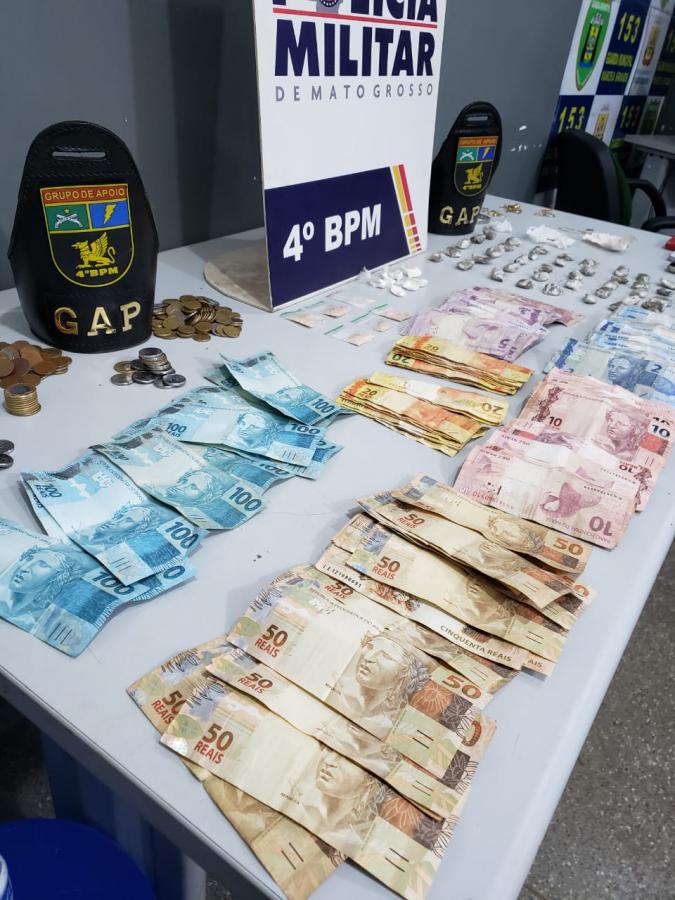 Os militares ainda revistaram a casa do comerciante, que fica anexo ao bar, e encontraram mais droga e R$ 4.884,15 em espécie guardados em um armário.