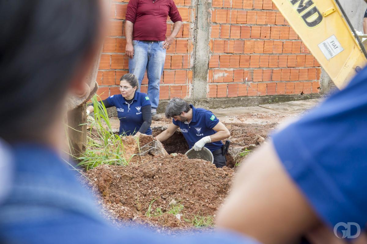 No comprimento do mandado de busca, autorizado pela Justiça, as equipes da Delegacia de Homicídios e Proteção à Pessoa (DHPP) conseguiram localizar uma ossada, que estava enterrada no quintal da casa do homem, no bairro Nova Conquista.