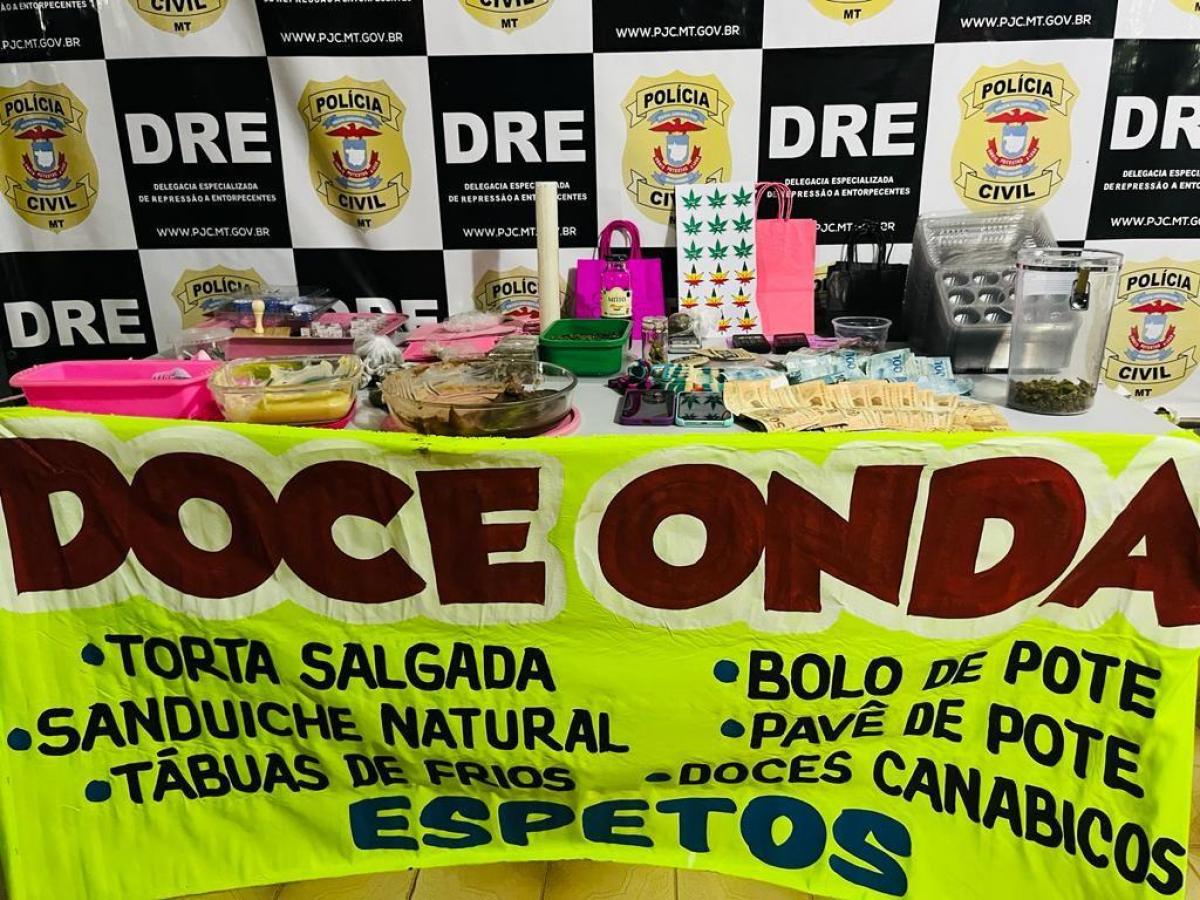 Casal de 24 e 29 anos foi preso pela Polícia Civil no bairro Alvorada, em Cuiabá, nesta quarta-feira (26), por vender droga misturada em doces e outros alimentos. O flagrante é da Delegacia Especializada de Repressão a Entorpecentes (DRE) que apreendeu vários produtos da empresa ‘Doce Onda’.