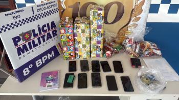 Em rondas, a PM encontrou o suspeito sentado na calçada da rua de casa. Ele foi abordado, preso e encaminhado para a delegacia.