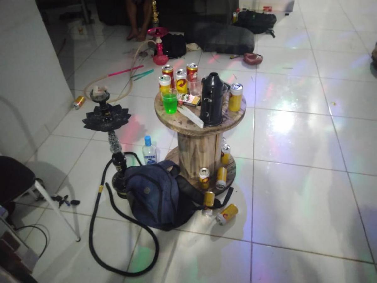 A denúncia descrevia uma festa clandestina com a presença de menores de idade consumindo bebida alcoólica e fumando narguilé. No imóvel, estavam 40 pessoas em um espaço confinado, entre eles 20 adolescentes.