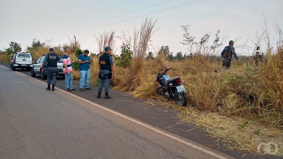Durante o registro da ocorrência, policiais foram informados que um motociclista havia batido em uma caminhonete na saída para o município de Guiratinga, mas que havia abandonado a moto e corrido para dentro de um pasto às margens da rodovia.