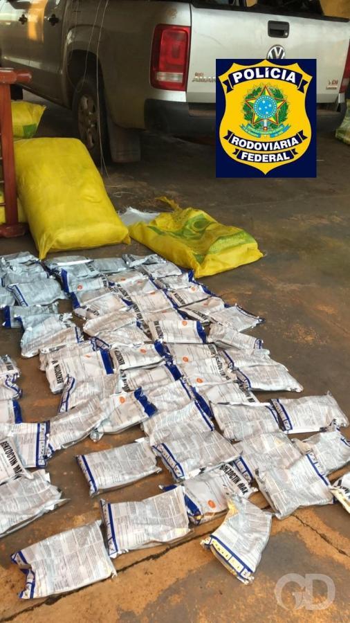 Sacos do produto estavam em duas caminhonetes que tentaram desviar do posto policial, mas foram flagradas pela equipe em ronda. Os condutores das duas caminhonetes abandonaram os veículos e fugiram.