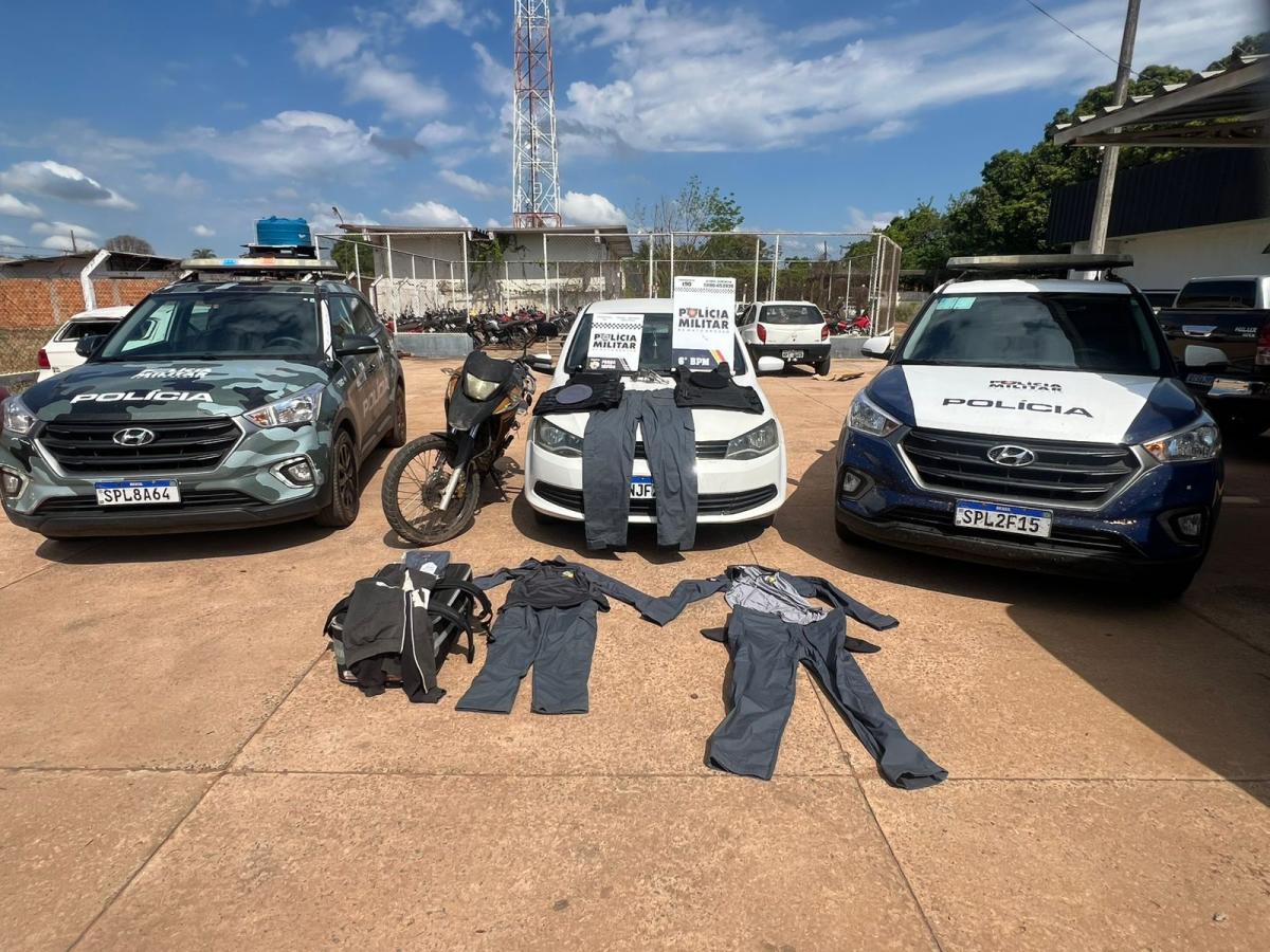 A motocicleta utilizada no crime foi localizada e tinha um registro de roubo na cidade de Rondonópolis (212 km ao Sul de Cuiabá). Além disso, os suspeitos indicaram o imóvel utilizado como apoio pelo grupo. Na residência, foram encontrados materiais de uso oficial, como coletes a prova de balas com o símbolo da Polícia Militar.