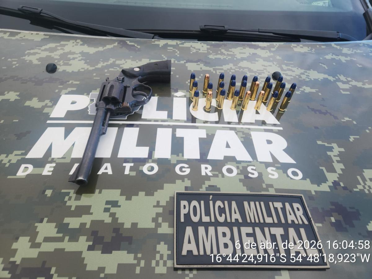 Um homem foi preso pela Polícia Militar Ambiental na tarde de segunda-feira (6), após ser flagrado transportando uma arma de fogo e munições durante abordagem na zona rural de Rondonópolis ( 212 km ao sul de Cuiabá).