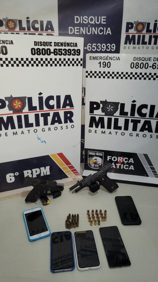 Durante a verificação das armas, foi identificado que uma das pistolas, a calibre .380, pertence a um policial militar e havia sido extraviada em outubro 2023, em Primavera do Leste.