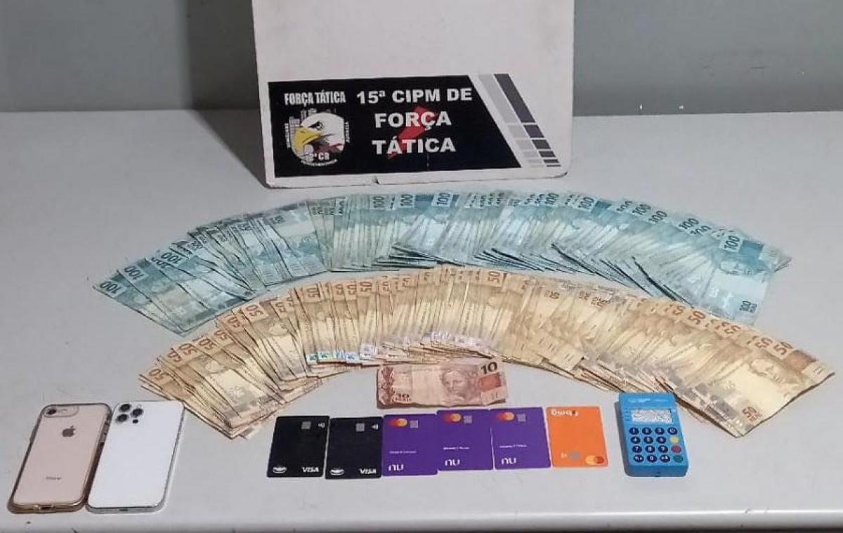 Rapidamente, os policiais conseguiram deter o veículo. Durante busca pessoal, nada de ilícito foi encontrado. No entanto no banco de trás do carro foi encontrado uma quantia de R$ 16.910,00 em espécie. O objeto dispensado por um dos suspeitos se tratava de um celular modelo Iphone. Eles confessaram que usaram o aparelho para aplicar o golpe em um aplicativo e sacaram o dinheiro que seria entregue para um homem no Parque do Lago.