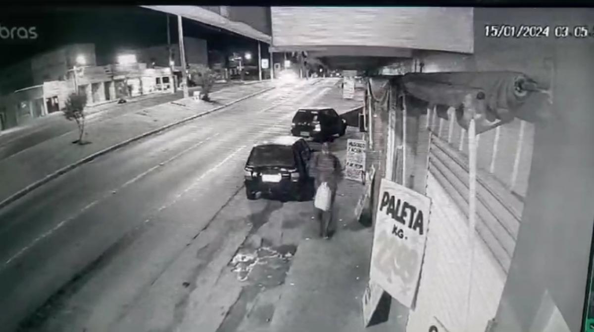 Imagens de uma câmera de segurança mostram o momento que o principal suspeito de matar Eduardo Barbosa Pereira de Sena, 44, foge do local do crime horas antes do corpo da vítima ser encontrado, em uma quitinete, aos fundos de um açougue no bairro Alvorada, em Cuiabá.