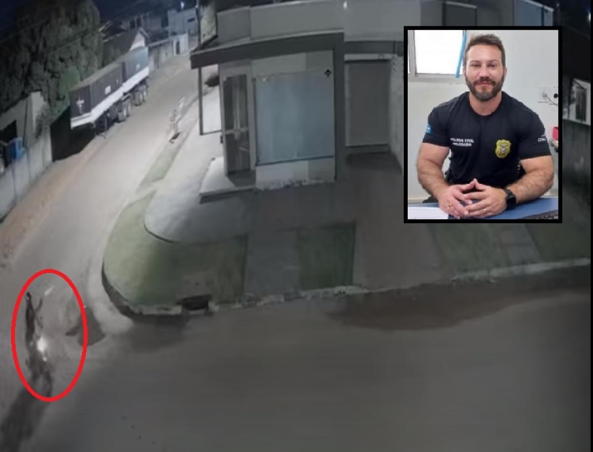 Nas imagens possível ver o momento em que o criminoso chega em uma motocicleta e efetua diversos disparos na porta da residência, que é de vidro, e foge em seguida. Conforme o delegado, em conversa com o