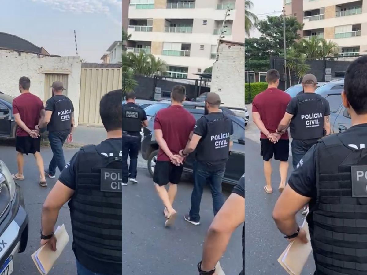 , B., foi preso no edifício Nova Petrópolis, no Jardim Petrópolis, em Cuiabá. Ele é empresário e também educador físico. No prédio, a polícia ainda cumpriu um mandado de busca.