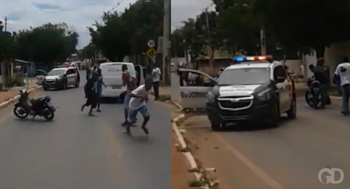 Durante a abordagem e busca pessoal, policiais foram cercados e atacados com pedradas e pedaços de pau. Em defesa, atiraram sem intenção de acertar os motociclistas.