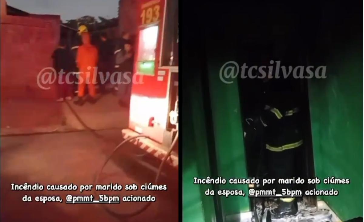 Uma mulher de 53 anos teve todos os móveis e documentos destruídos em incêndio, na manhã deste sábado (26), em Rondonópolis (215 km ao Sul). O marido é suspeito de ter provocado o fogo no local e ele ainda não foi preso.