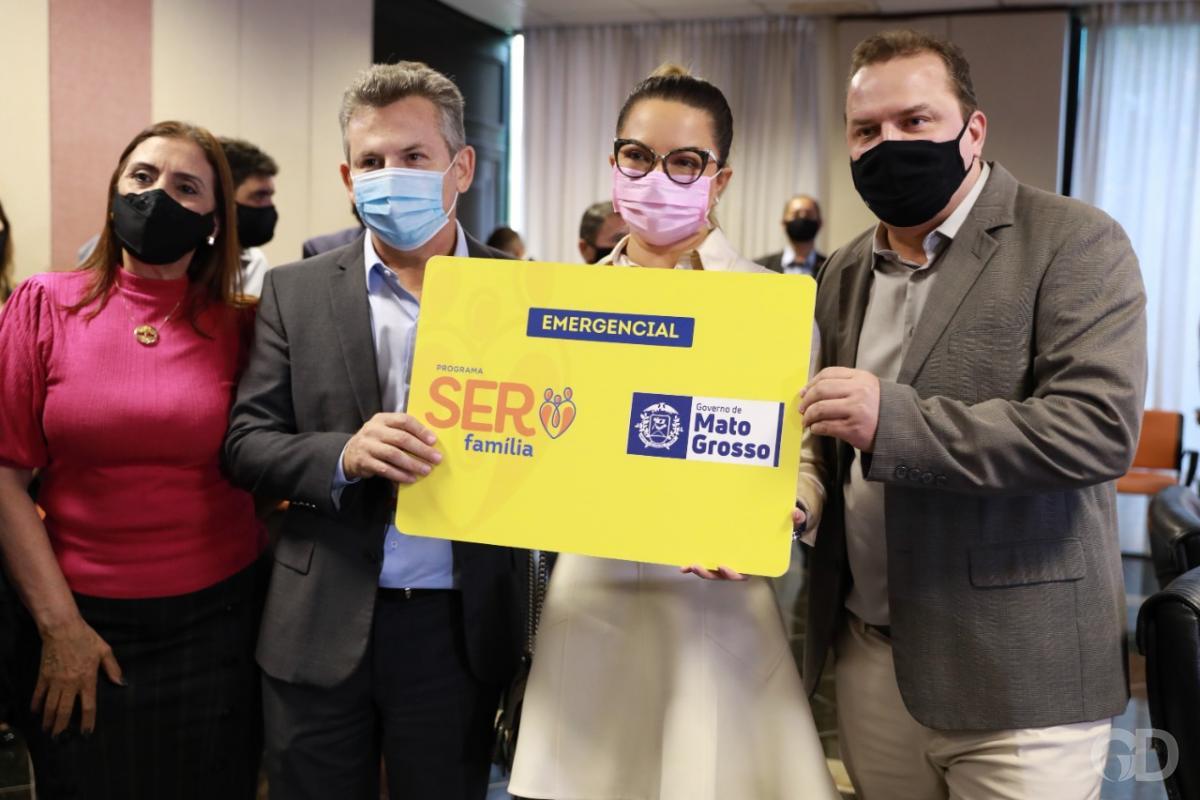 O governador Mauro Mendes (DEM) e a primeira-dama Virgínia Mendes lançaram na tarde desta terça-feira (16) o programa Ser Família Emergencial, que atenderá a 100 mil lares de baixa renda em Mato Grosso com cartões de R$ 150 mensais. A ação conta com previsão inicial de 3 meses de duração.