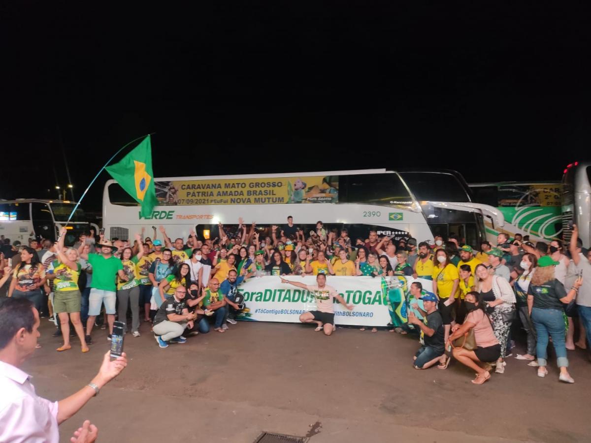 Grupos de direita de Mato Grosso saíram em caravana para apoiar ao presidente Jair Bolsonaro (sem partido) em Brasília. Os manifestantes se organizam para protestar por "liberdade" e contra o Supremo Tribunal Federal (STF), na terça-feira (7), dia em que se celebra o Dia da Independência.