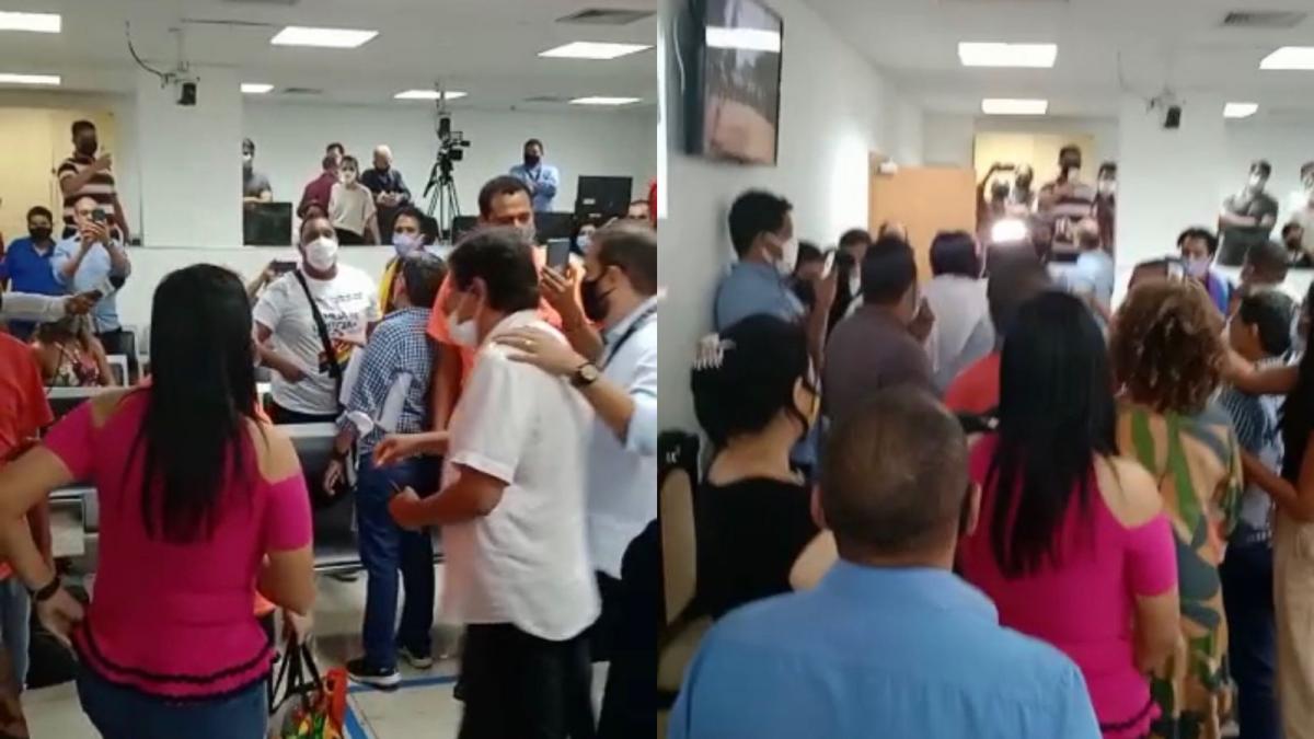 Nas imagens, é possível ver o momento em que a parlamentar deixa o dispositivo da Comissão e cobra "respeito" ao evangélico que gritou. Na sequência, um grande tumulto generalizado formado por pastores e membros da comunidade LGBTQIA+ se forma na sala de reunião.