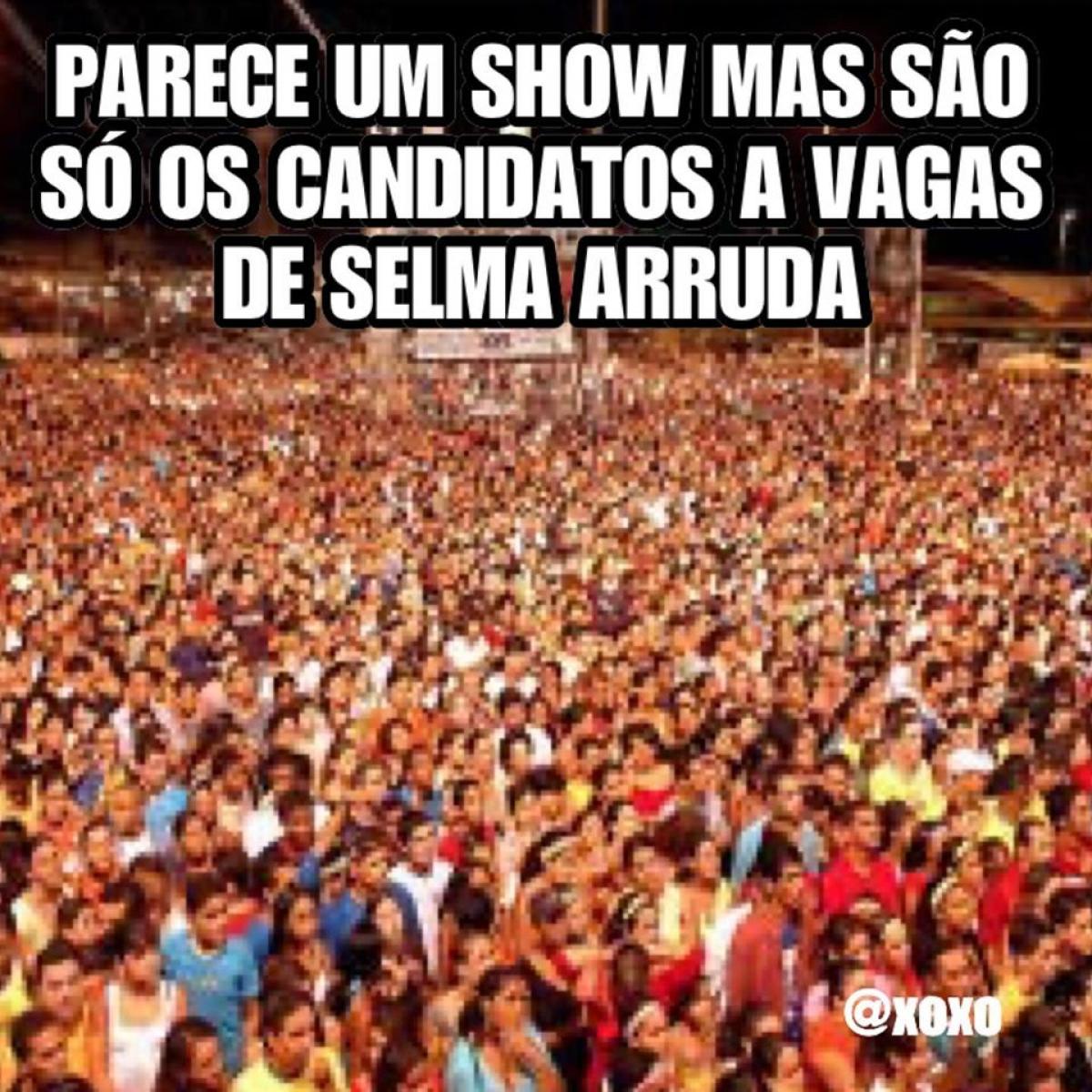 Em outro meme uma multidão de pessoas aparece em uma foto. "Parece um show, mas são só os candidatos a vaga de Selma Arruda".