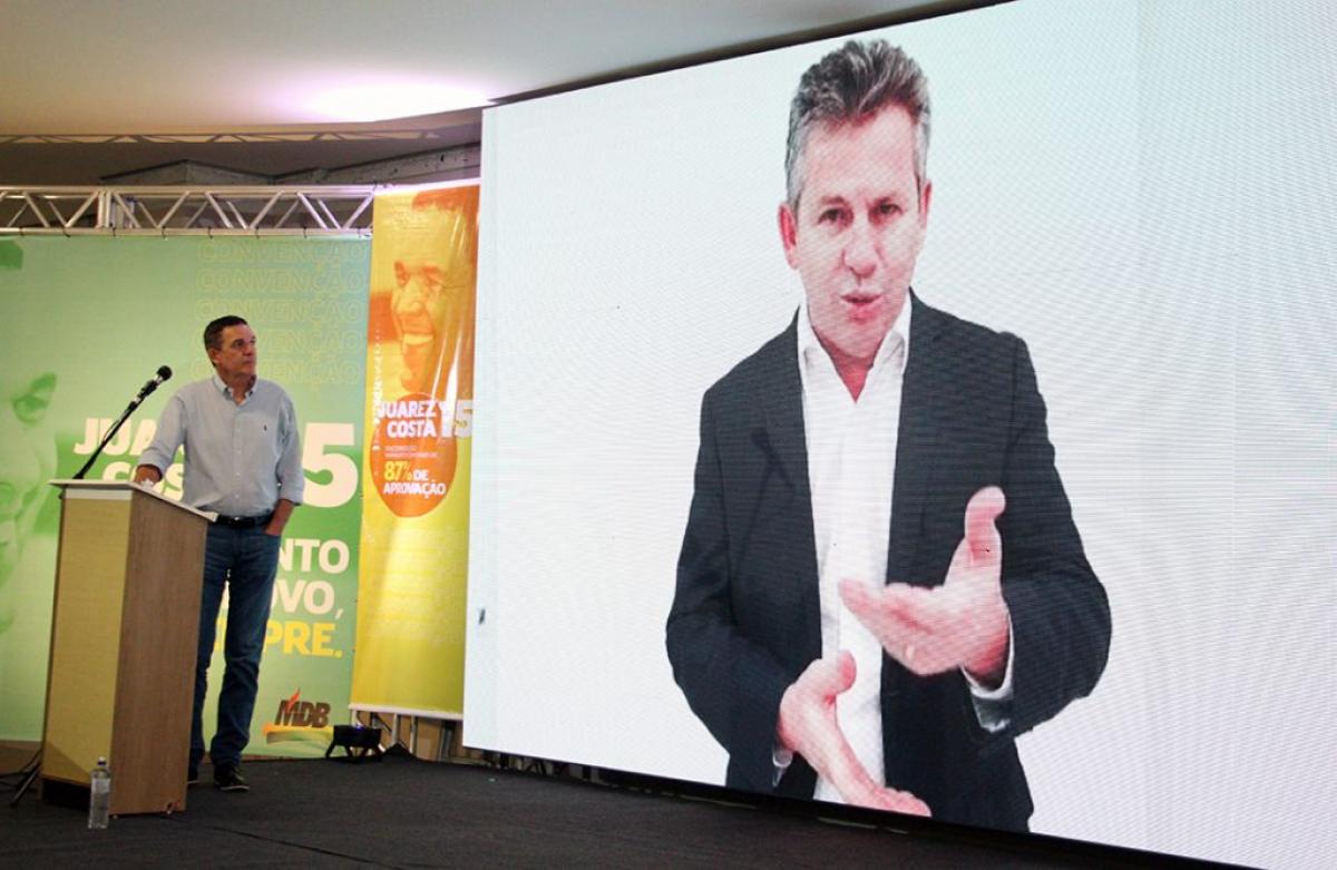 O governador Mauro Mendes (DEM) gravou mensagem de apoio que foi exibida em telão durante a reunião partidária. “Pelo trabalho que você já fez e amor que tem por essa cidade de Sinop não tenho dúvidas que terá seu reconhecimento para que juntos, nos próximos anos, nós possamos trabalhar ainda mais e dar bons resultados para cidade de Sinop”. “Estamos juntos e vamos trabalhar”, destacou.