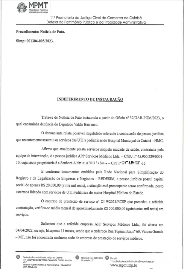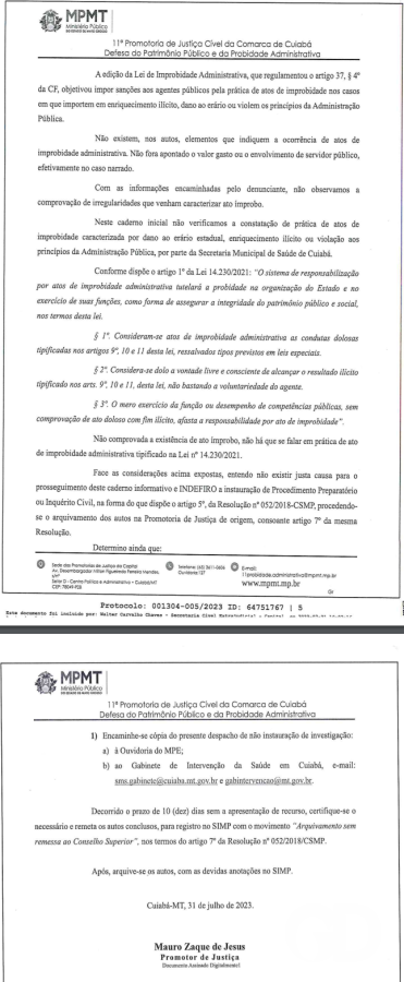 1. A denúncia mencionada nesta segunda-feira (02/12/2024) já foi analisada e arquivada pelo Ministério Público do Estado de Mato Grosso em 2023, evidenciando a falta de fundamento jurídico na acusação.