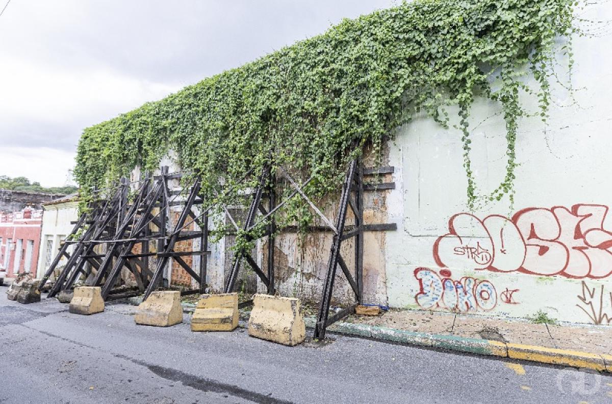 “As escoras são para que a sociedade não tenha nenhum tipo de risco, porque o imóvel está em colapso estrutural. É para evitar e também para salvaguardar o imóvel, porque você ainda consegue manter aquele sistema originário ainda de pé, até que se encontrem recursos. É como se fosse uma sobrevida, o imóvel está na UTI, sobre aparelhos”, explica Robinson de Carvalho Araújo, arquiteto e urbanista, superintendente de Preservação do Patrimônio Histórico e Museológico, da Secretaria de Estado de Cultura, Esporte e Lazer (Secel).