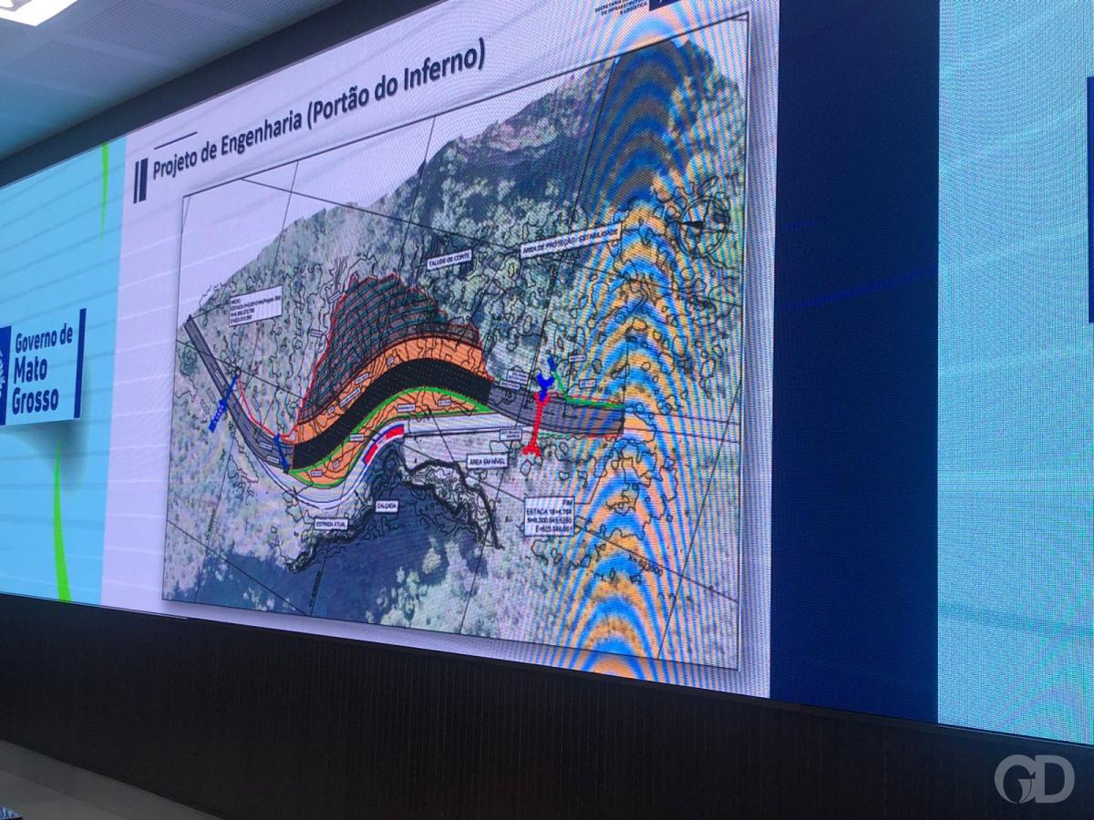 O governador Mauro Mendes (União) assinou a ordem de serviço com Lotufo Engenharia e Construções LTDA, empresa que fará o recorte dos paredões e o novo traçado da MT-251, na região do Portão do Inferno, em Chapada dos Guimarães (67 km de Cuiabá). O projeto busca por fim nos deslizamentos de terra no local.