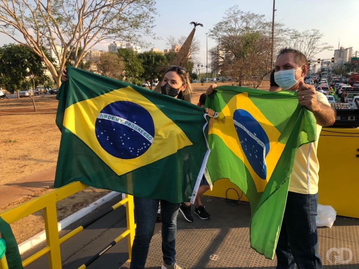 Durante todo o trajeto, os grupos de Direita reiteraram as críticas contra o Supremo Tribunal Federal (STF) e expressaram apoio ao presidente Jair Bolsonaro (Sem partido) e a seu formato de gestão. Os manifestantes deixaram a Praça das Bandeiras as 16h00, na avenida do CPA, e percorreram a Miguel Sutil até a chegarem na Orla por volta 18 horas, onde foram recebidos com show de música eletrônica, flashback, rasqueado e outros ritmos. A maior parte deles sem o uso da máscara de proteção contra a covid-19.