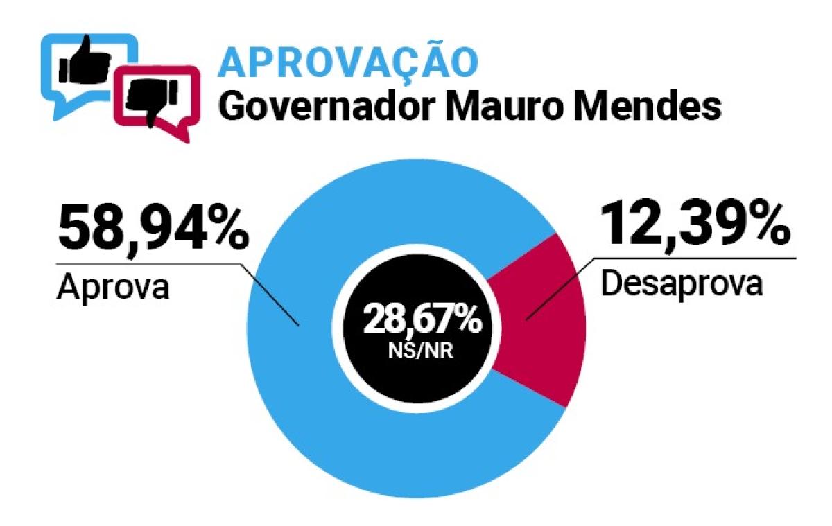 Em relação ao governo do Estado, 58,94% dos entrevistados aprovam a forma como o governador Mauro Mendes (União) vem administrando o Estado. Já 12,39% disseram reprovar a administração do Palácio Paiaguás. E 28,67% não souberam ou não quiseram responder.