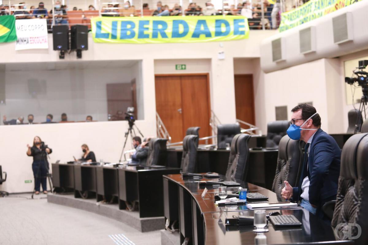 Diante de muita gritaria em plenário, a votação do projeto de lei que pretende proibir a exigência do passaporte da vacina em Mato Grosso foi adiada para a sessão desta quarta-feira (5). A matéria entrou na Ordem do Dia desta terça-feira (4), mas sofreu um pedido de vista do deputado Lúdio Cabral (PT) na Comissão de Saúde e Previdência Social.