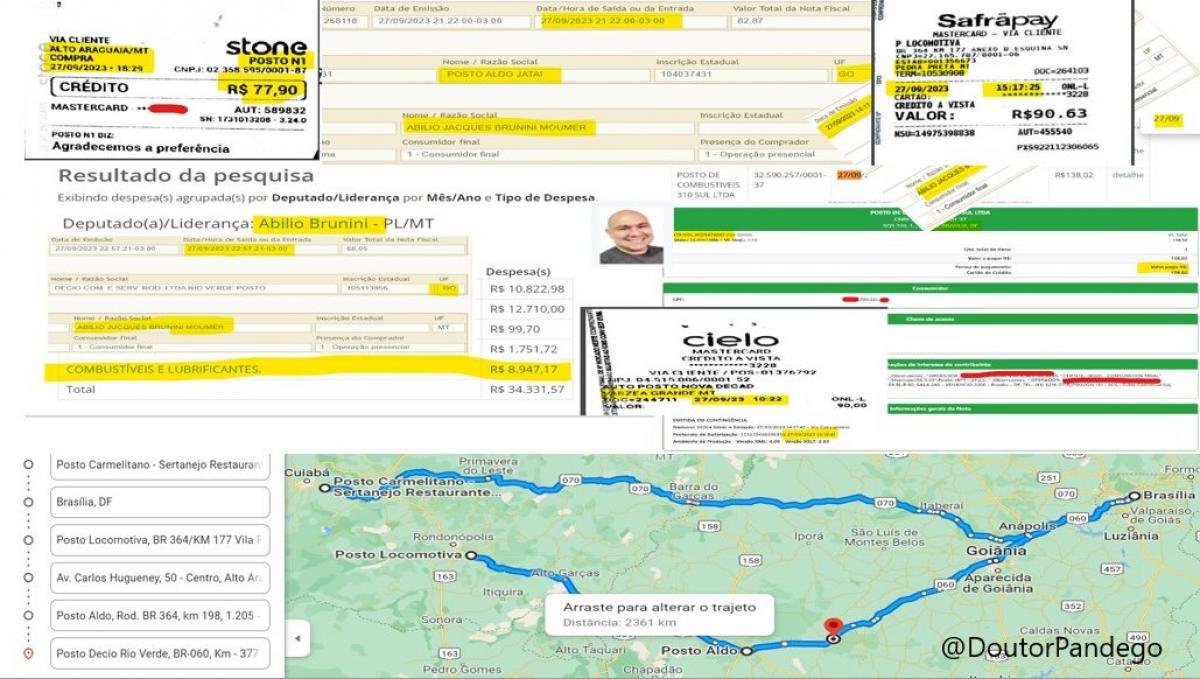 O deputado federal Abílio Junior (PL) abasteceu em 6 postos de combustíveis diferentes, no mesmo dia, para se deslocar entre Rondonópolis, Brasília e Cuiabá. A viagem ocorreu no dia 27 de setembro 2023. De acordo com o Portal da Transparência da Câmara dos Deputados, o parlamentar teria desembolsado R$ 547,47 para cumprir o trajeto. O percurso foi publicado pelo perfil @pesquisas_elige, que divulga os gastos dos parlamentares.