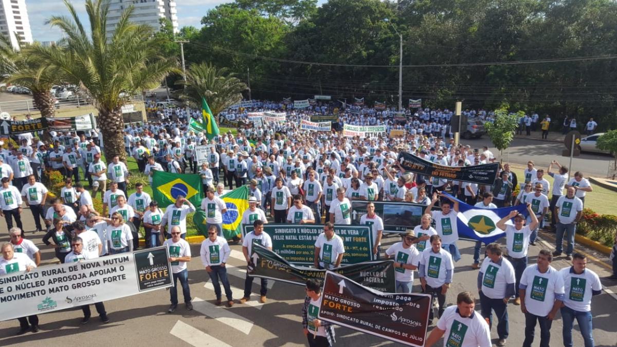 Produtores rurais de dezenas cidades de Mato Grosso estão em protesto pelas vias do Centro Político Administrativo (CPA) contra a taxação do agronegócio. O Movimento é liderado pela Associação dos Produtores Rurais de Soja e Milho de Mato Grosso (Aprosoja).