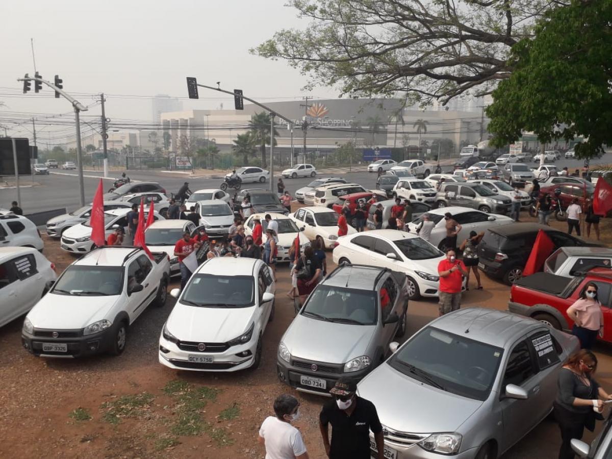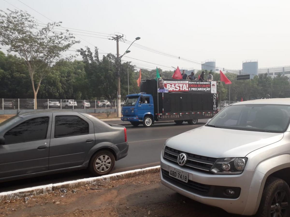 Servidores da educação realizam uma carreata na manhã desta terça-feira (15) contra o governador Mauro Mendes (DEM). Na pauta, o congelamento dos salários e o direito à eleição dos diretores das escolas. Os professores e funcionários saíram do Tribunal Regional do Trabalho (TRT) e passaram pelo Palácio Paiaguás, Ministério Público do Estado (MPE) e Tribunal de Contas do Estado (MPE).
