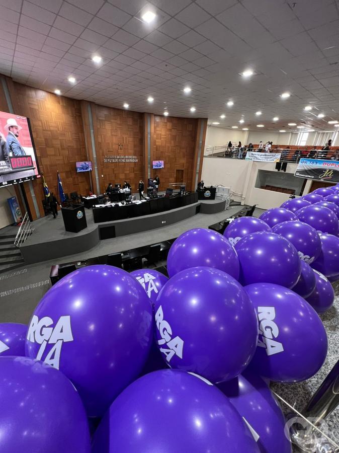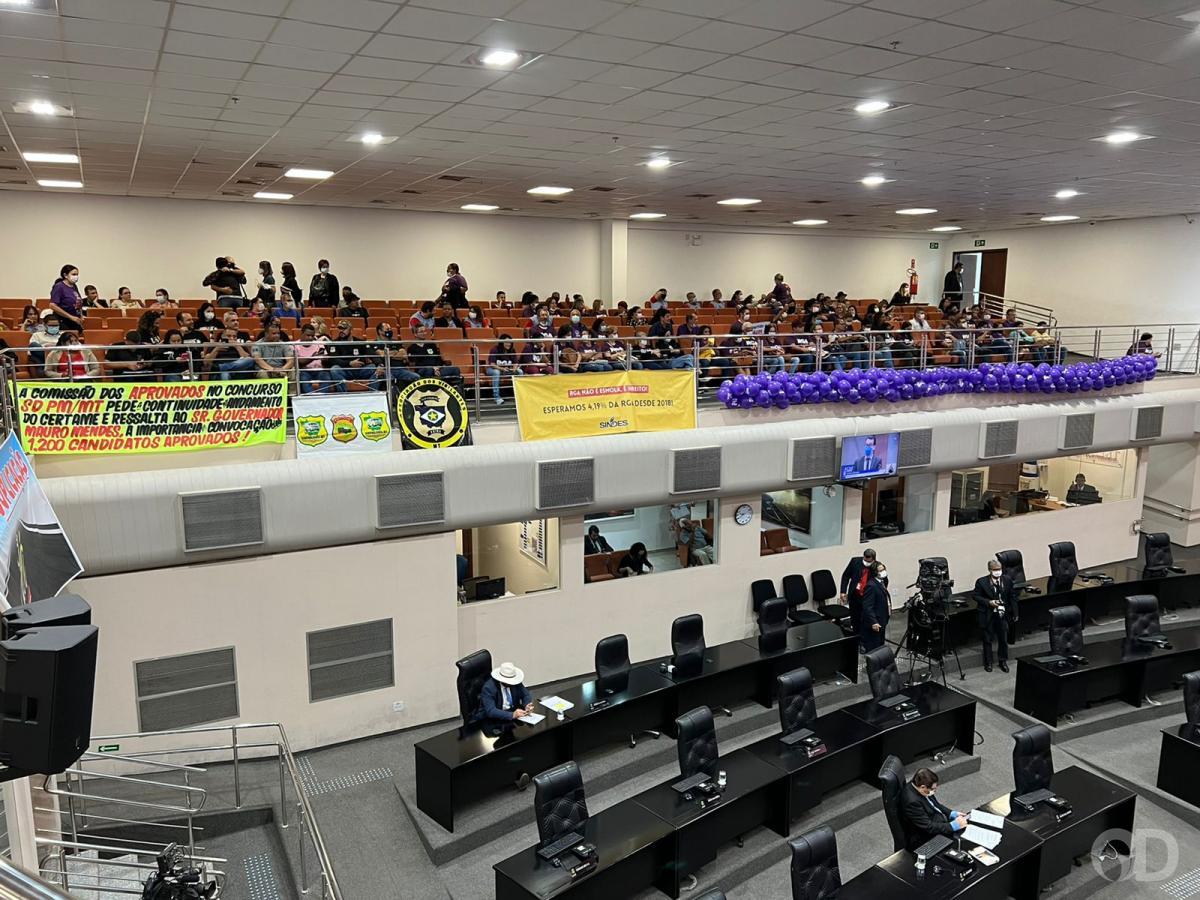 Servidores de várias áreas da gestão estadual ocupam as galerias do Legislativo, como também estão mobilizados na frente da Assembleia Legislativa.