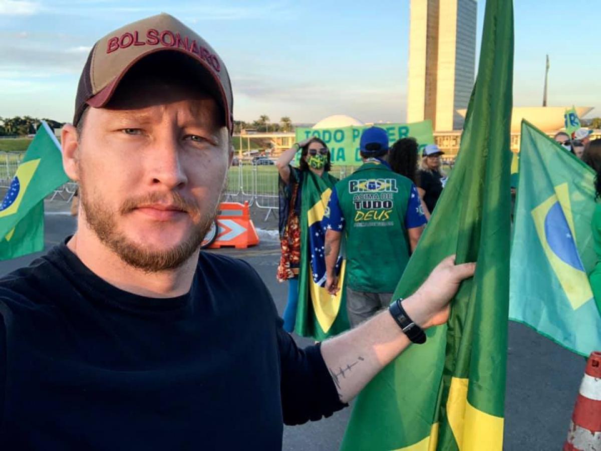 Ele compareceu voluntariamente na tarde de quarta-feira à sede da Polícia Federal em Cuiabá para "prestar esclarecimentos". Usava boné com o nome do presidente, camiseta amarela com os dizeres "Supremo é o povo" e carregava uma bandeira do Brasil.