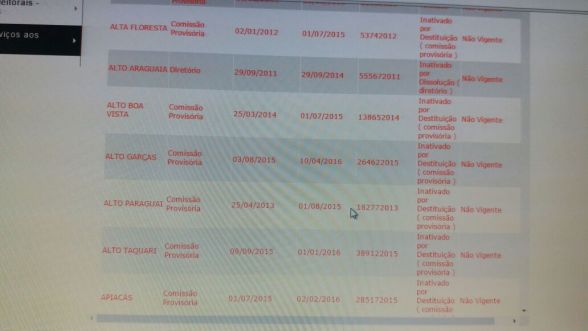 A acusação surgiu depois que o deputado estadual Oscar Bezerra (PSB) recebeu, por parte de uma assessora, imagens da página do Tribunal Regional Eleitoral (TRE-MT) que mostra que os diretórios municipais estão inativados por destituição da comissão provisória ou por dissolução do diretório.