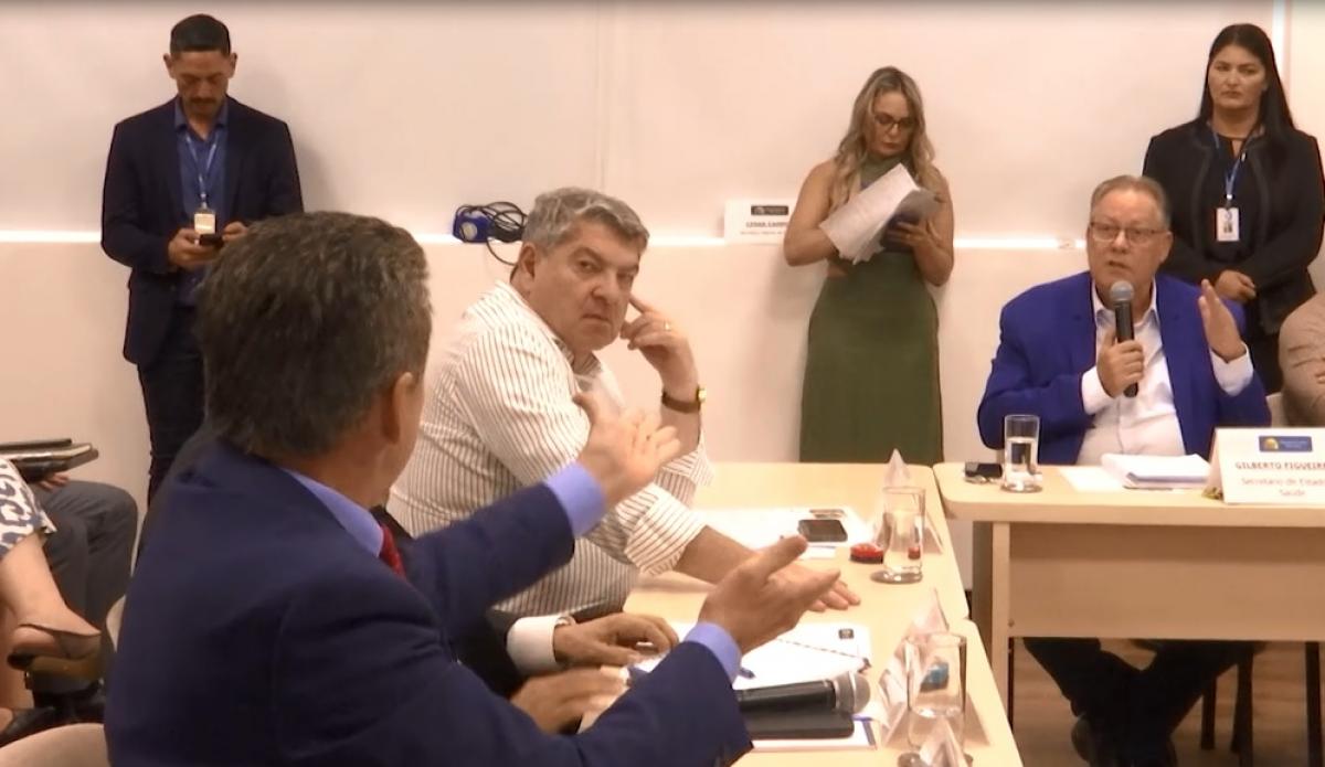 O secretário de Saúde de Mato Grosso, Gilberto Figueiredo (União), e o presidente do Tribunal de Contas (TCE), conselheiro Sérgio Ricardo, travaram um “bate-boca” durante a Mesa Técnica para debater o pagamento de dívidas da Prefeitura de Cuiabá, com empresas que prestam serviços ao Hospital Municipal de Cuiabá (HMC) e Hospital São Benedito. Encontro e discussão ocorreram na quarta-feira (17).