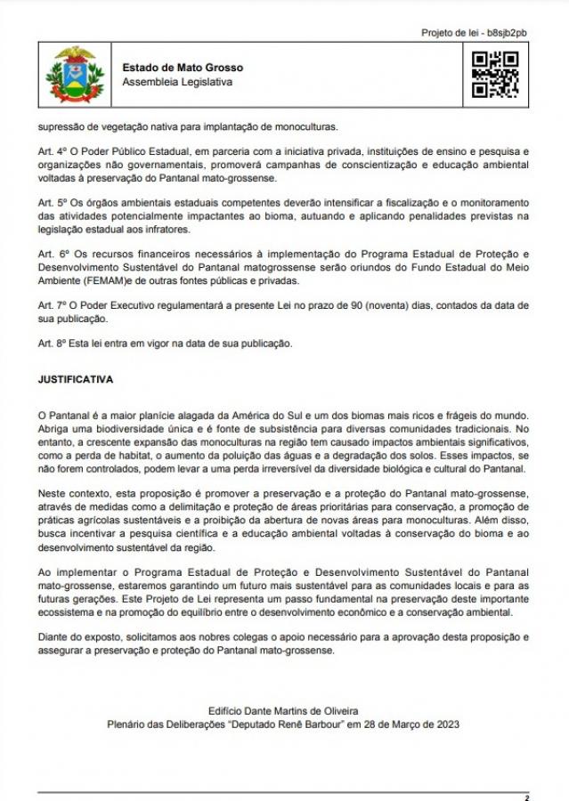 Com texto voltado à proteção do bioma por meio da contenção do avanço de lavouras de monoculturas de soja, milho e algodão, o projeto de lei nº 1.015/2023 defende, entre outros pontos, a delimitação das áreas prioritárias para conservação, incentivo à plantação de sistemas agroflorestais e ao ecoturismo.