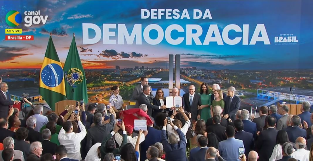 A cerimônia foi realizada no Palácio do Planalto e reuniu autoridades dos Três Poderes, ministros de Estado, parlamentares, representantes do Judiciário e movimentos da sociedade civil. O evento marcou os três anos da invasão e depredação das sedes do Congresso Nacional, do Supremo Tribunal Federal (STF) e do próprio Planalto.