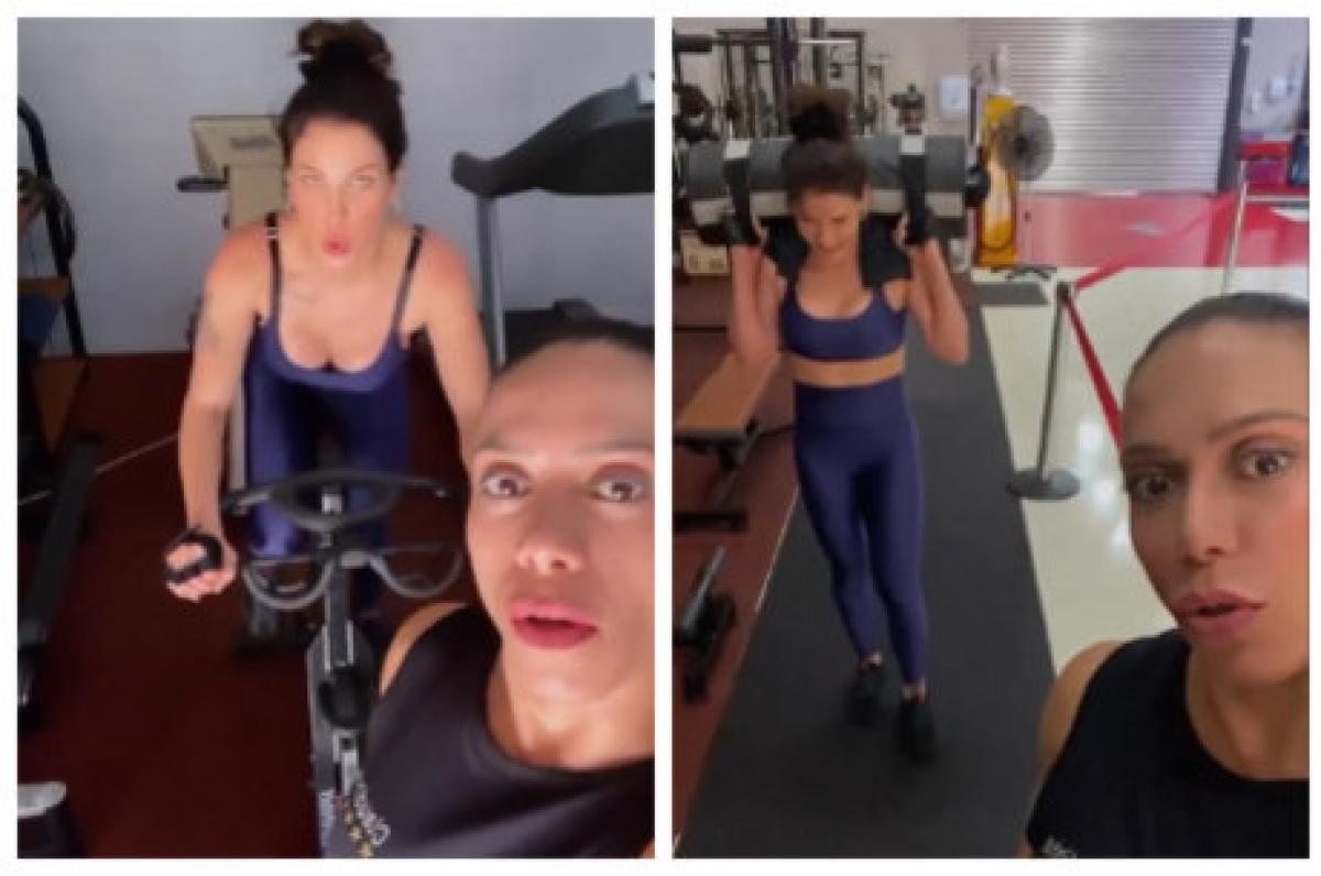 Acompanhada de uma personal trainer, Andressa, que agora está moreníssima, fez exercícios para pernas e glúteos. "'Bora'! Vamos que vamos... Queimar o bacon, as cervejas, os vinhos", brincou a modelo.