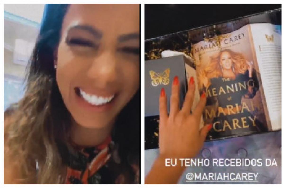 Emocionada e muito empolgada, Anitta mostrou que ganhou a biografia de Mariah, além de outros mimos.
