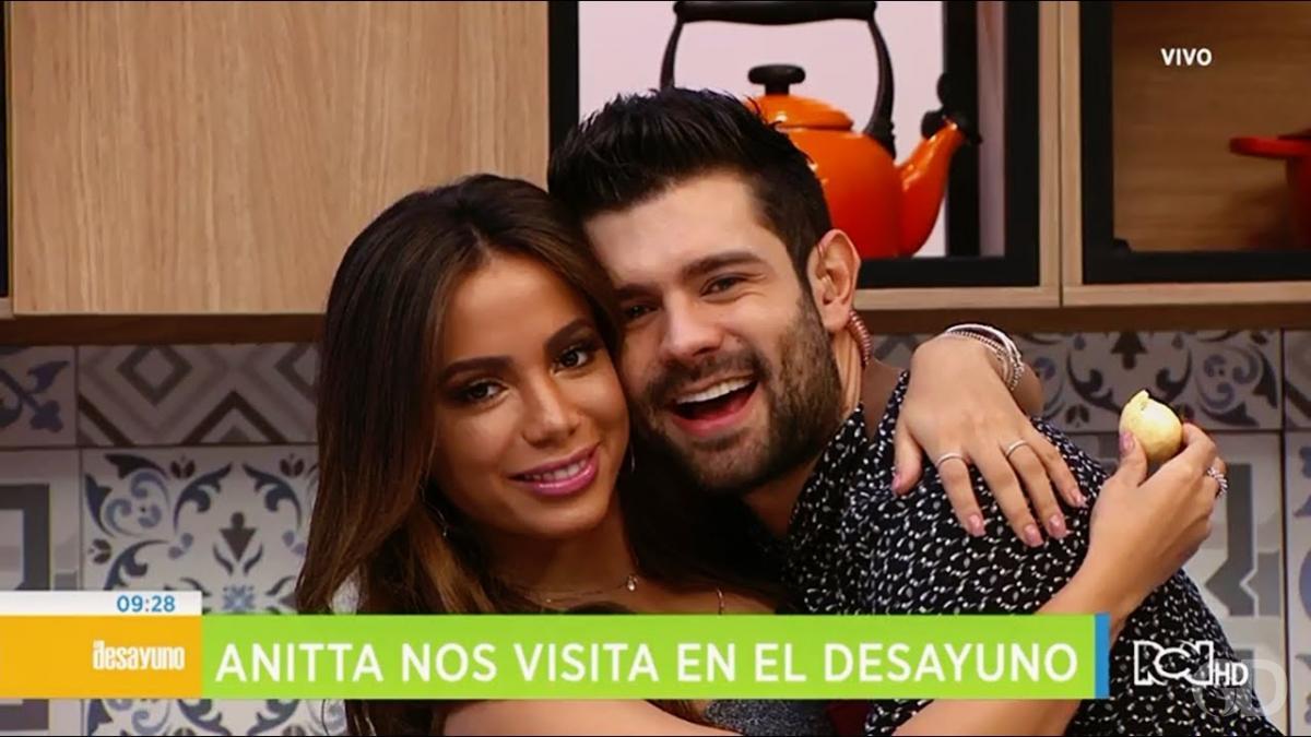 Ao participar nesta sexta (30) do programa local "El Desayuno", uma espécie de "Hoje em Dia", Anitta tascou um beijo na boca do apresentador.