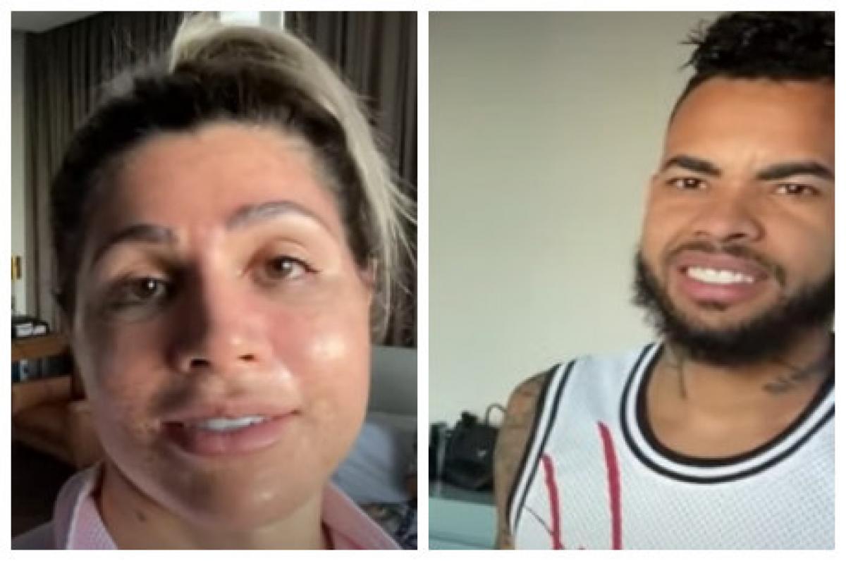 Ao mostrar o resultado do que chamou de "novo botox" para o marido, a empresária o assustou. "O que você fez no rosto? Está doida?", questionou Dentinho, que logo depois se declarou em tom de brincadeira: "Eu te amo de qualquer jeito, com a cara puxada, enrugada. Mas assim não".