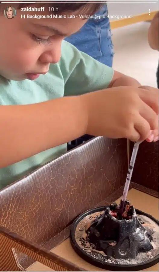 Além da avó materna, o pequeno também costuma passar alguns momentos na casa de sua outra avó, dona Ziada Huff, Mãe de Murilo Huff. Na tarde desta terça-feira (18), em um registro compartilhado pela vovó babona, Léo surgiu todo concentrando pintando e modelando uma escultura de massinha em forma de vulcão. A seriedade do menino deixou os fãs do artista encantados.